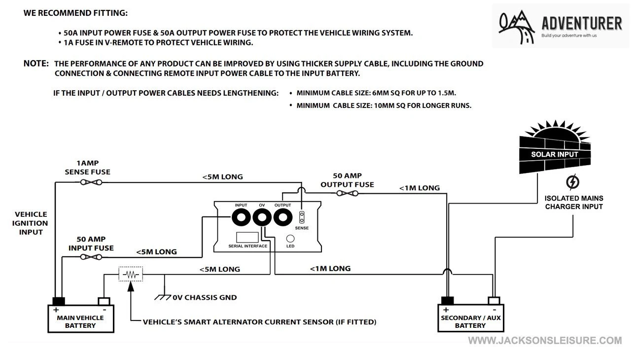Adventurer 12 V battery DC to DC charger (leisure battery to vehicle battery) with built-in trickle charge