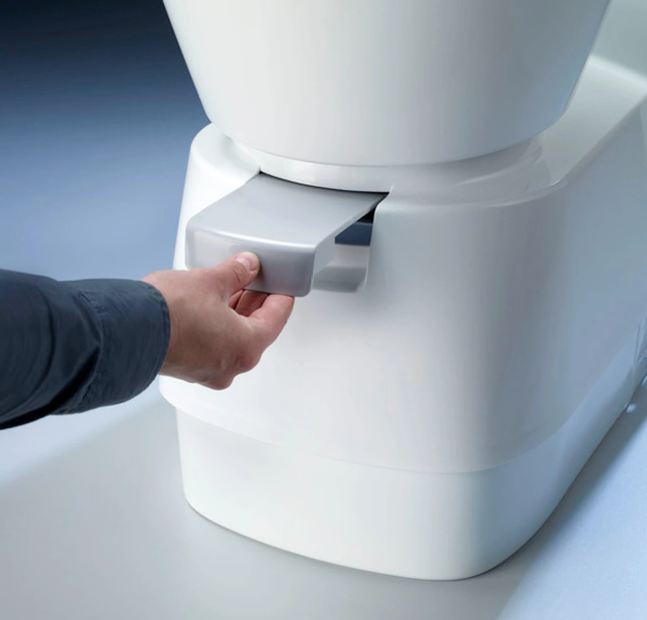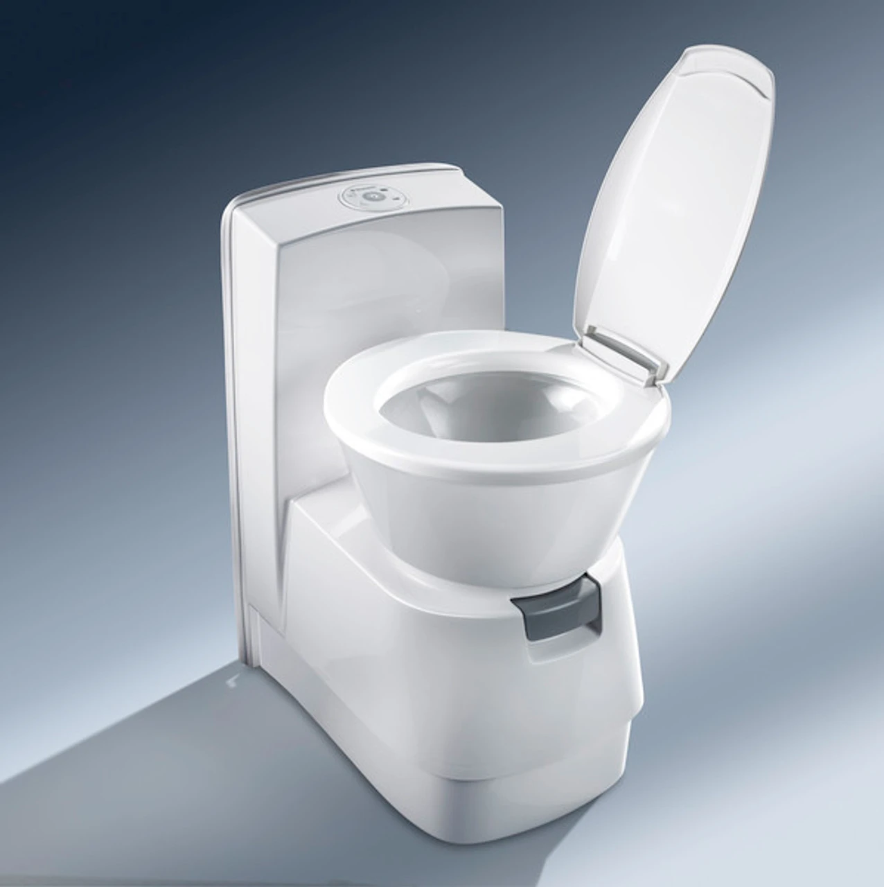 Boasting a space efficient design that also replicates the comfortable shape, height and material of a home toilet, the Dometic CTS 4110 Motorhome Cassette Toilet is a free standing toilet model with a rear console.