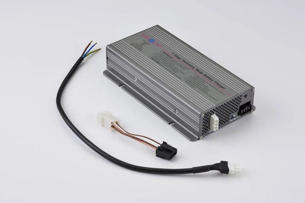 This air cooled unit is ideal as a replacement for many makes and models of charger, and is also suitable for new installations. It comes with a short adaptor cable which matches the 12V connector on many ‘Nordelettronica’ charger units. This cable can also be used with 6.3mm female spade terminals. A short 230V mains cable is also supplied, for connection to a 5A fused 230V supply.