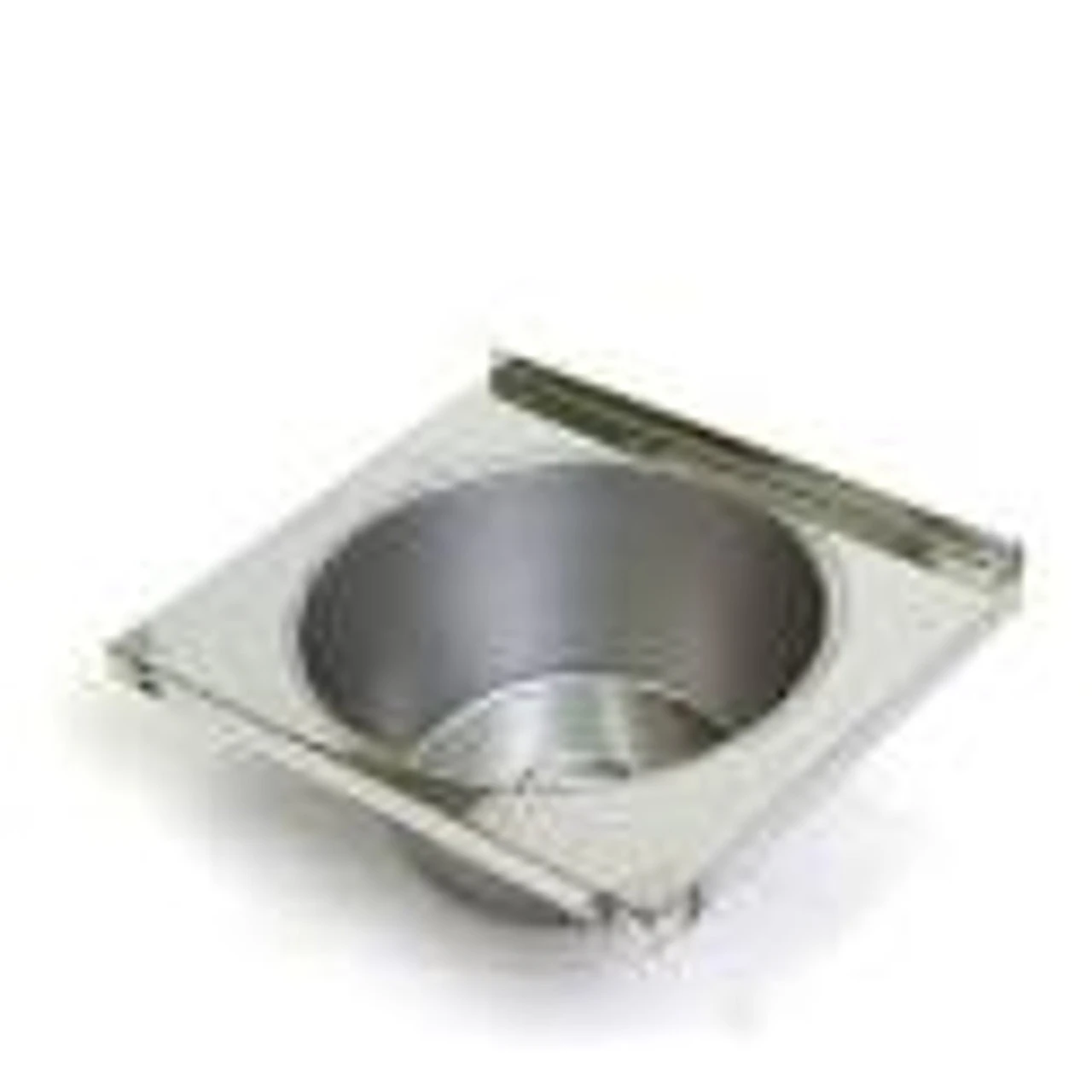A very compact round stainless steel bowl set in a rectangular surround.