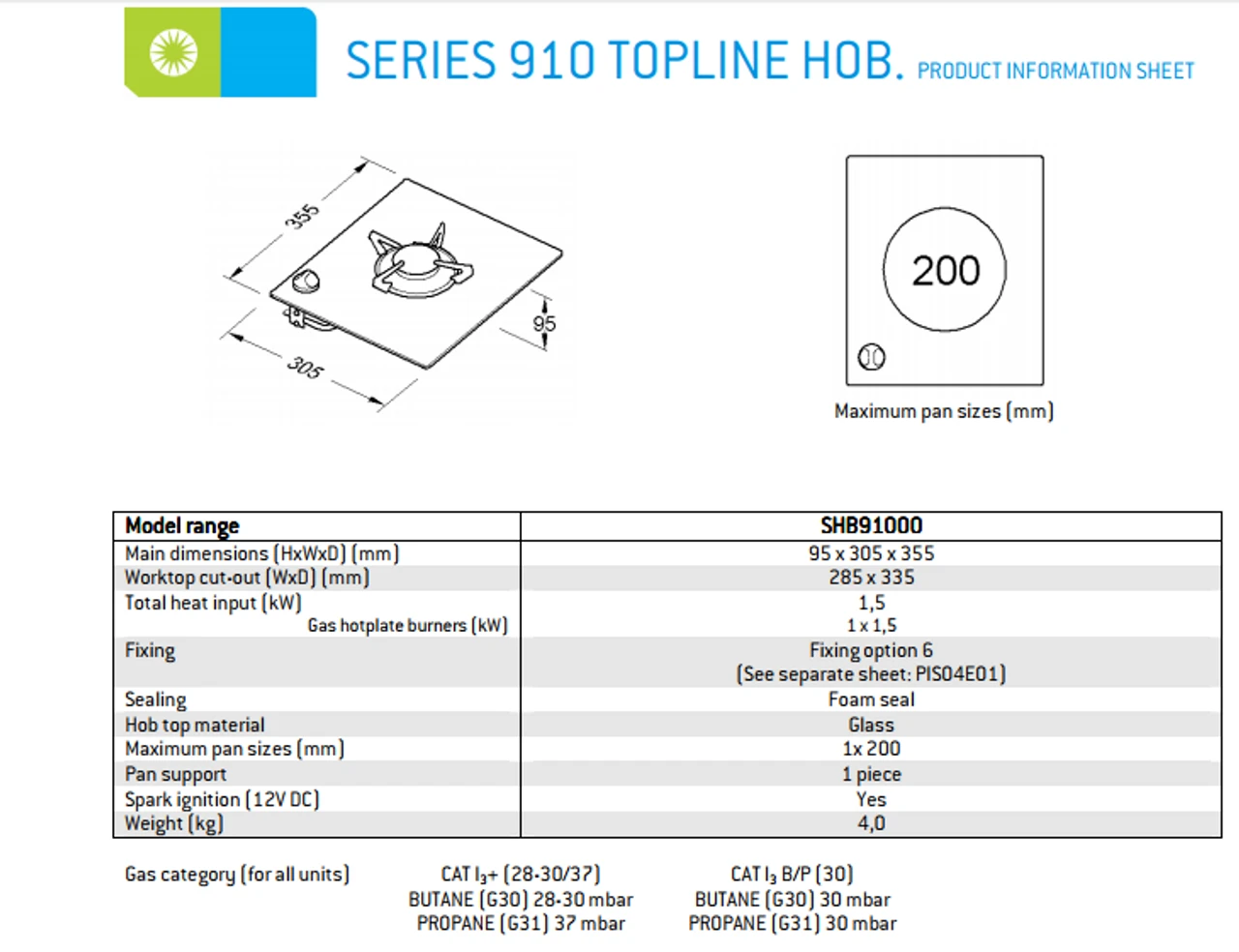 Thetford Topline 910 Single Burner Campervan Motorhome Caravan Hob