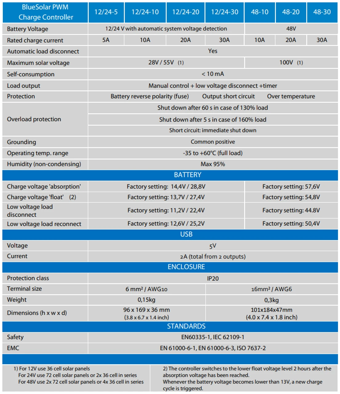 Victron Energy BlueSolar PWM Charge Controller Features: